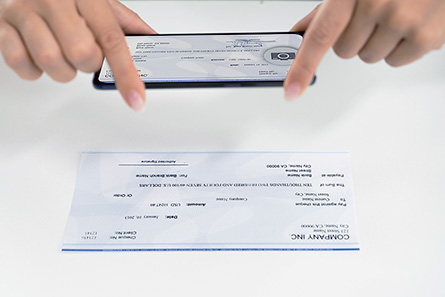 Deposit checks simply by using the camera on your phone or tablet to photograph the front and back of your check.